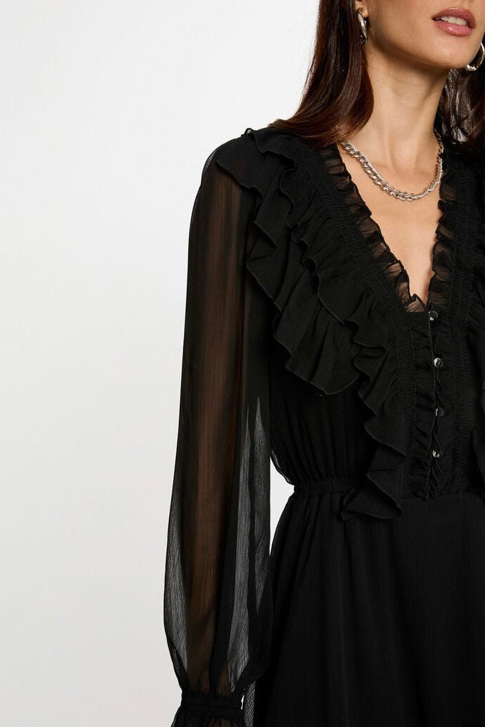 Questo capo con balze può essere abbinato a un blazer strutturato,