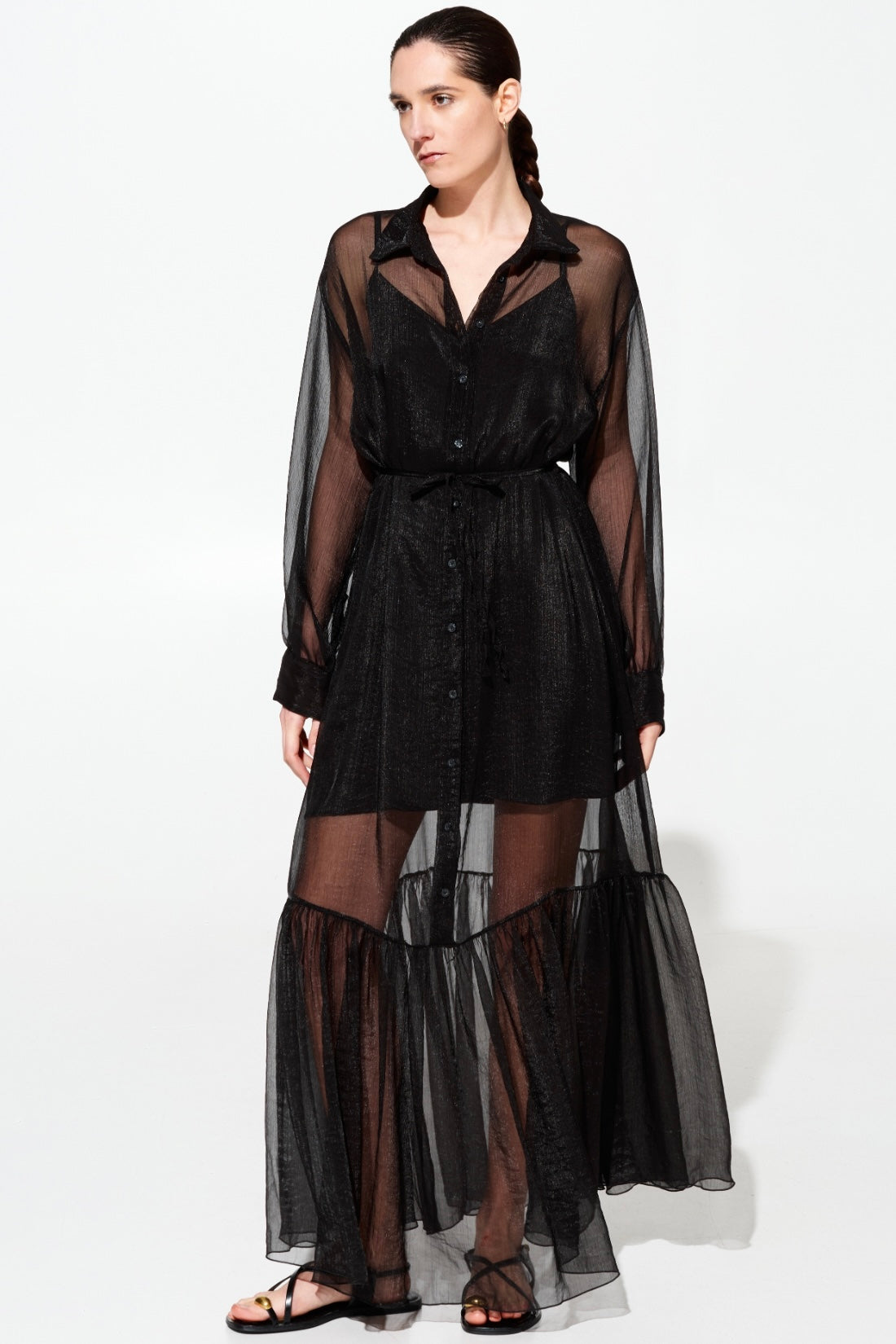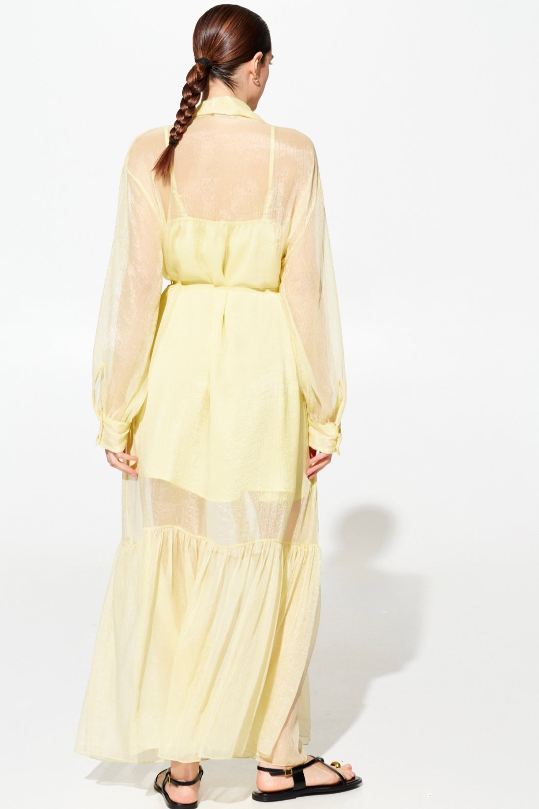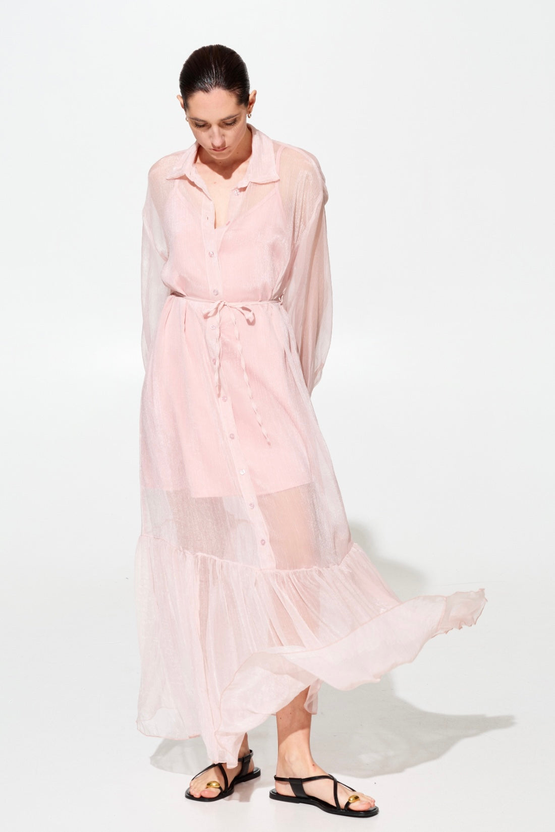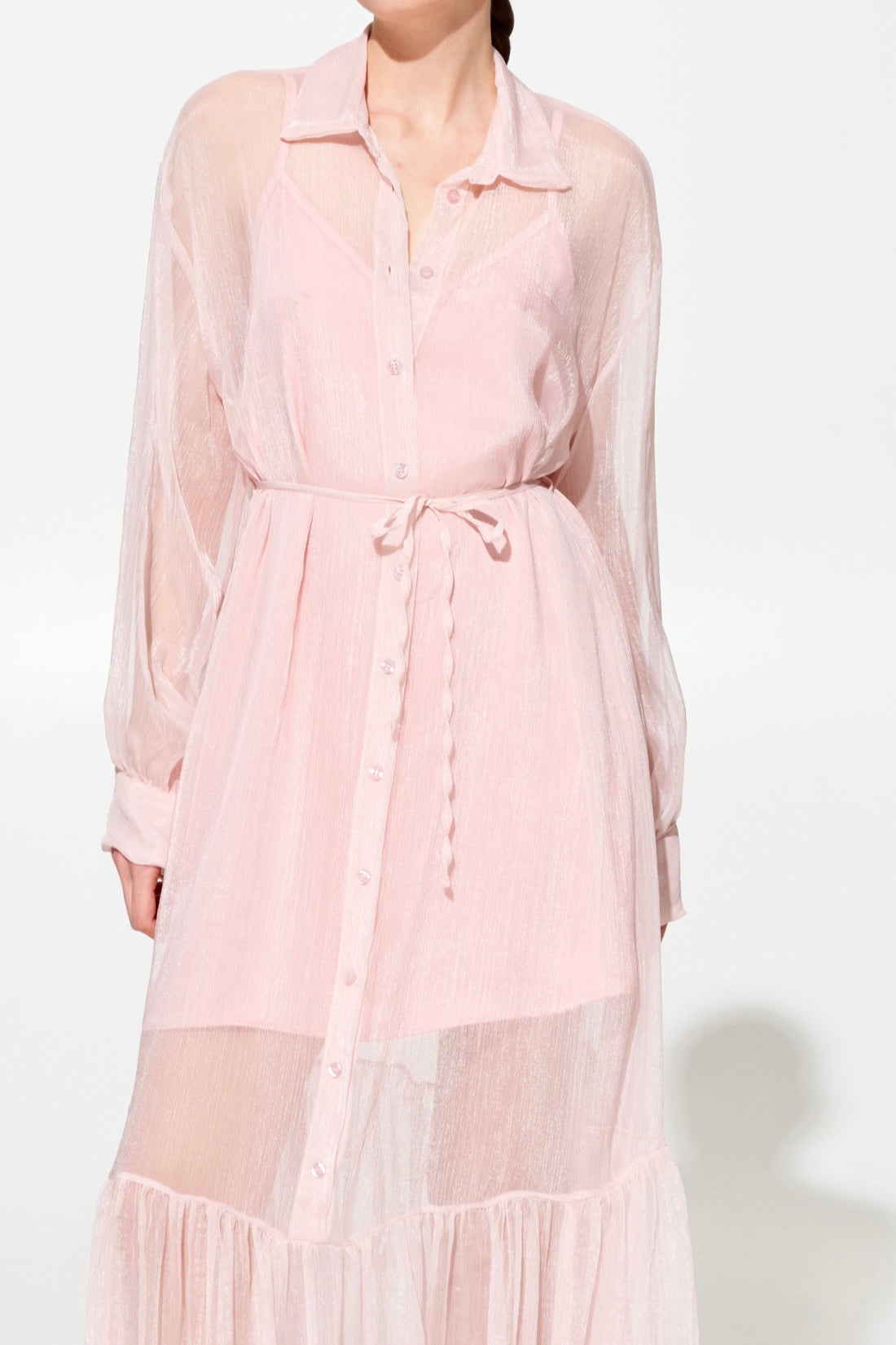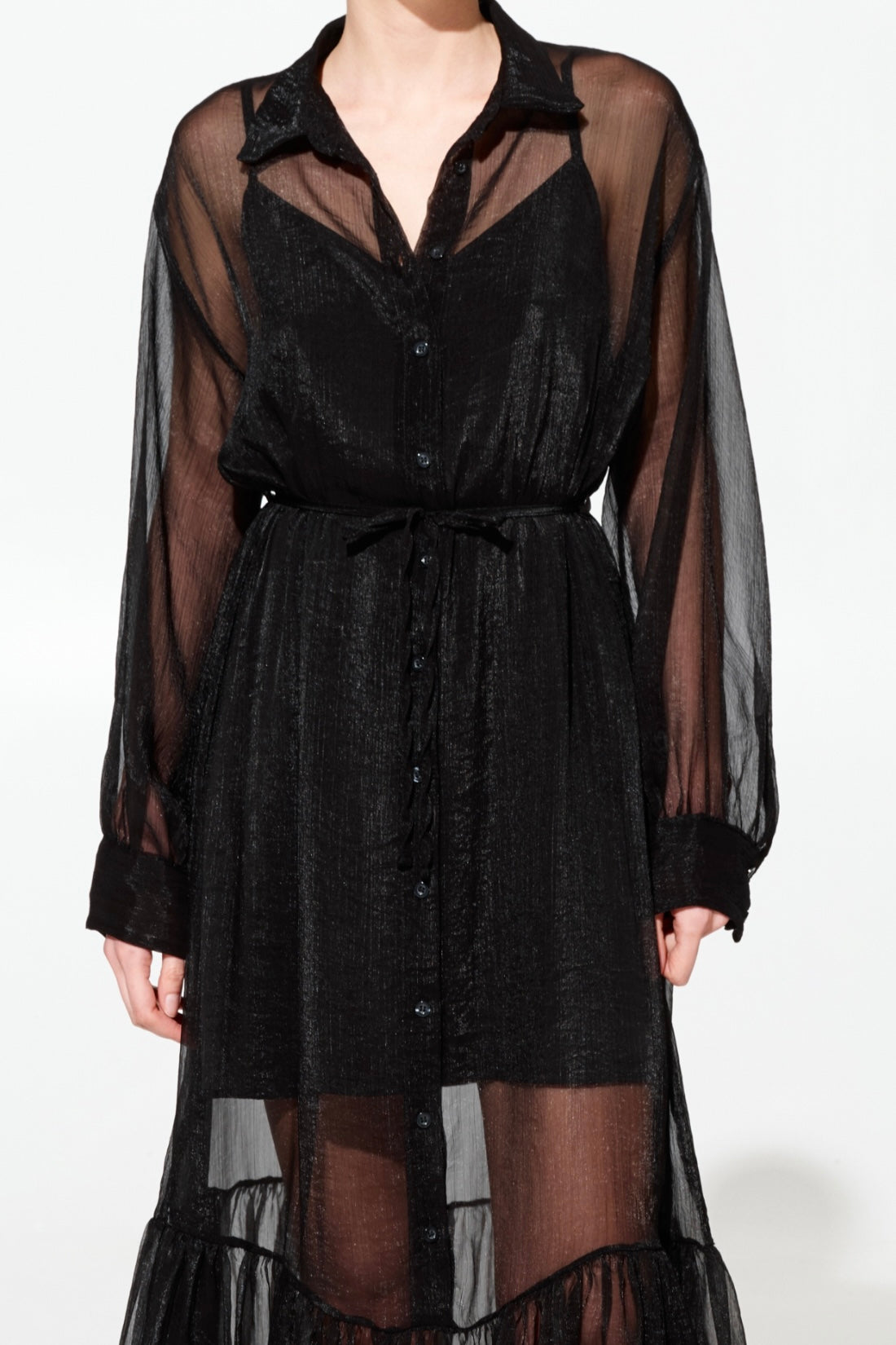 Elegante abito lungo in chifone che unisce sofisticatezza e comfort. La sottoveste in viscosa garantisce una caduta perfetta e una vestibilità fluida che valorizza la silhouette. Caratterizzato da un colletto a camicia classico, cintura in chifone regolabile in vita e chiusura frontale con bottoni per un'apertura pratica. Disponibile in tre tonalità raffinate: rosa, giallo e nero. Taglie S/M e M/L per una vestibilità versatile.