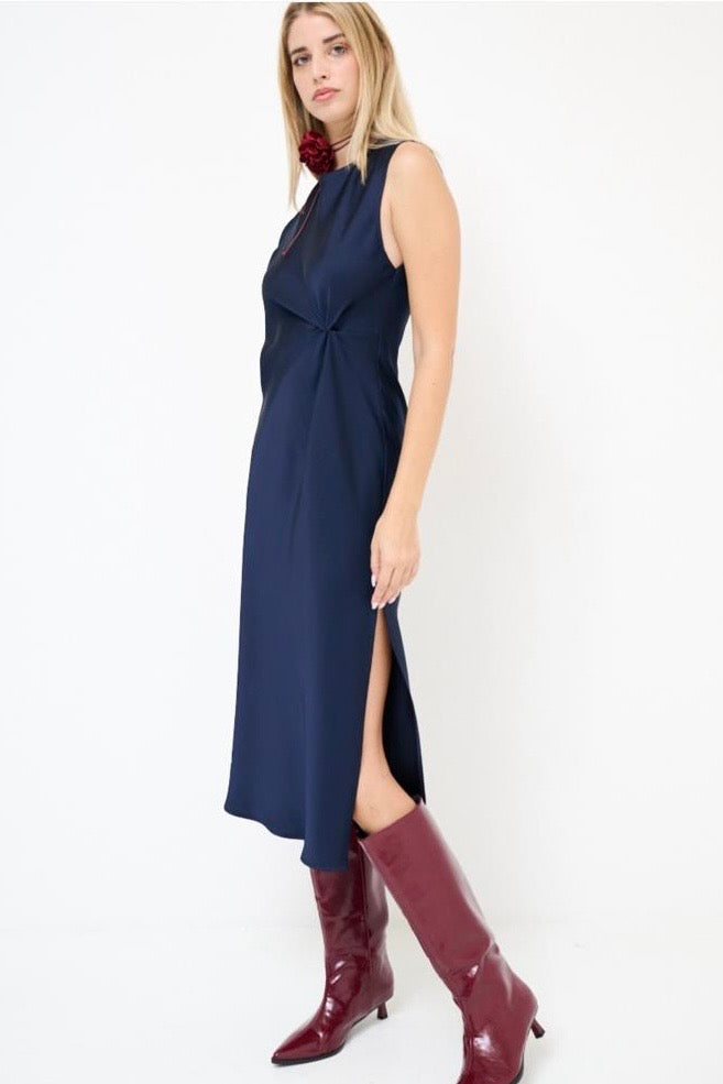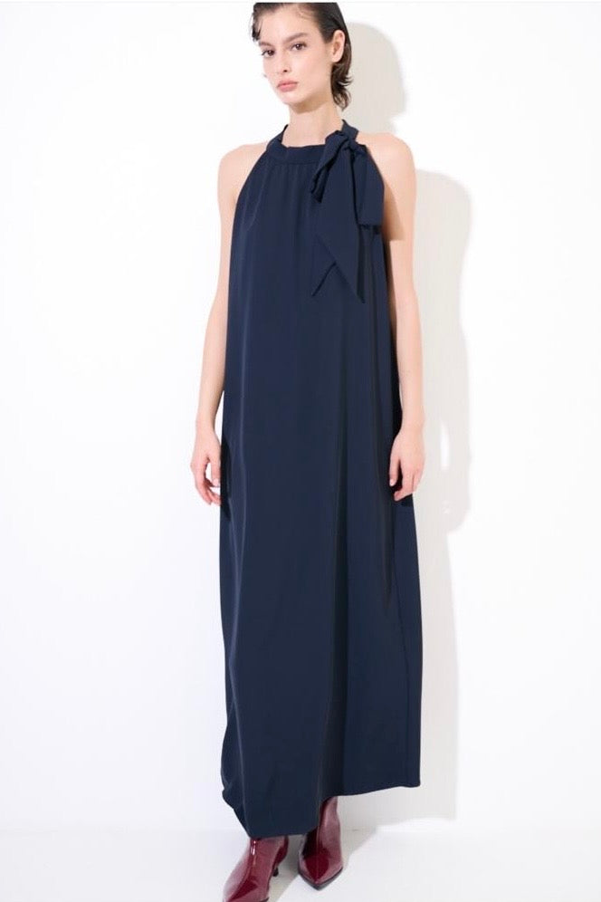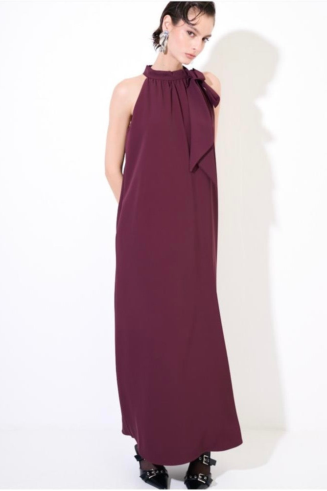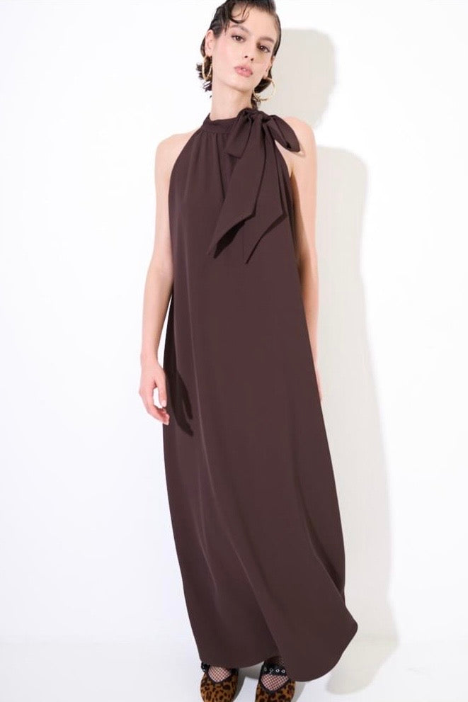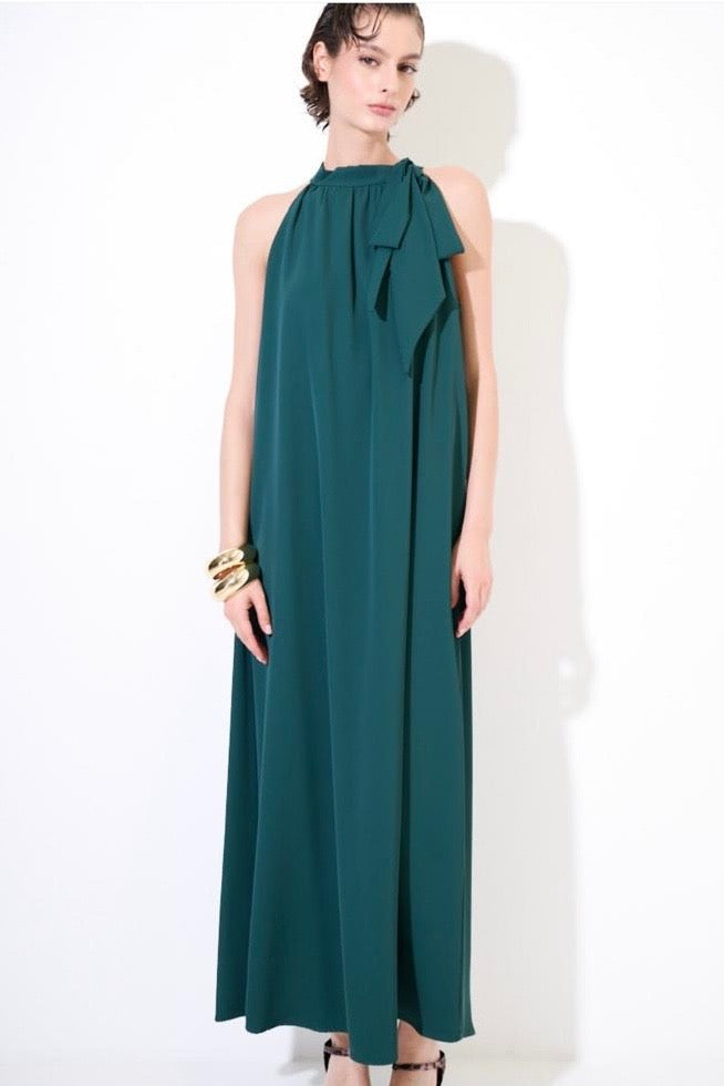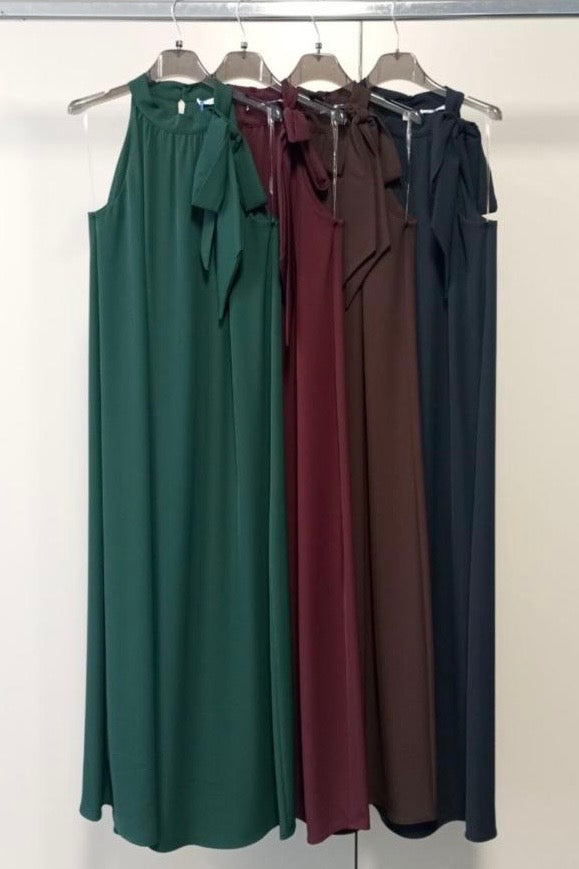 Elegante abito smanicato dalla silhouette raffinata, caratterizzato da un delicato fiocco che ne esalta la femminilità. Le linee morbide e fluide regalano movimento e comfort, mentre la lunghezza intera lo rende perfetto per occasioni speciali e cerimonie. Disponibile in tre tonalità sofisticate, si adatta a diversi stili personali mantenendo un'estetica senza tempo. Un capo versatile che combina eleganza classica e praticità.