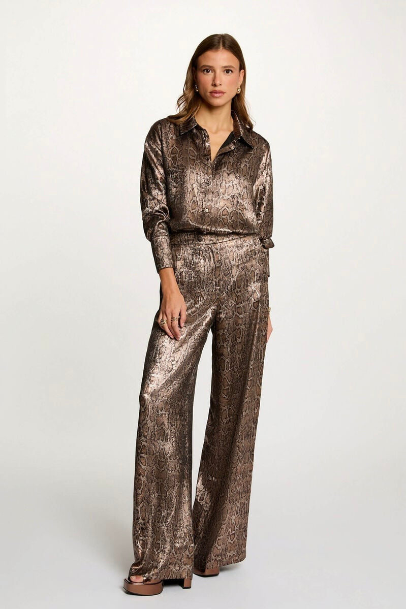 Camicia in satin con affascinante stampa pitone, perfetta per chi ricerca eleganza con un tocco di carattere. Il tessuto satin garantisce una morbidezza straordinaria sulla pelle e una lucentezza sofisticata che cattura la luce. La vestibilità comoda consente libertà di movimento senza compromessi stilistici, rendendola ideale sia per occasioni formali che per look casual elevati. Il motivo animalier conferisce personalità e versatilità, abbinandosi facilmente con capi neutri o audaci. Un capo essenziale per chi desidera esprimere stile consapevole.