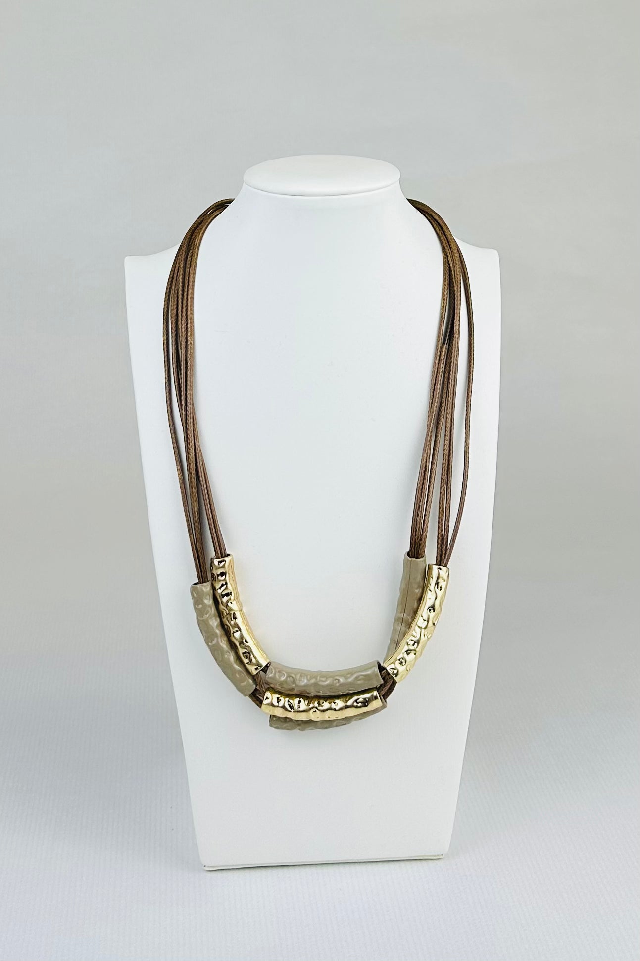 Collana Bamboo: tubicini martellatti in armonia perfetta su filo di pelle, creando un'estetica contemporanea che cattura lo sguardo. I dettagli in oro martellato aggiungono quel tocco di luce e unicità che trasforma ogni outfit in una dichiarazione di stile. Versatile e sorprendente, è il regalo inaspettato che tutti desiderano o la scelta ideale per chi ama il design moderno e alla moda. Disponibile in una palette di colori per esprimere la tua personalità.