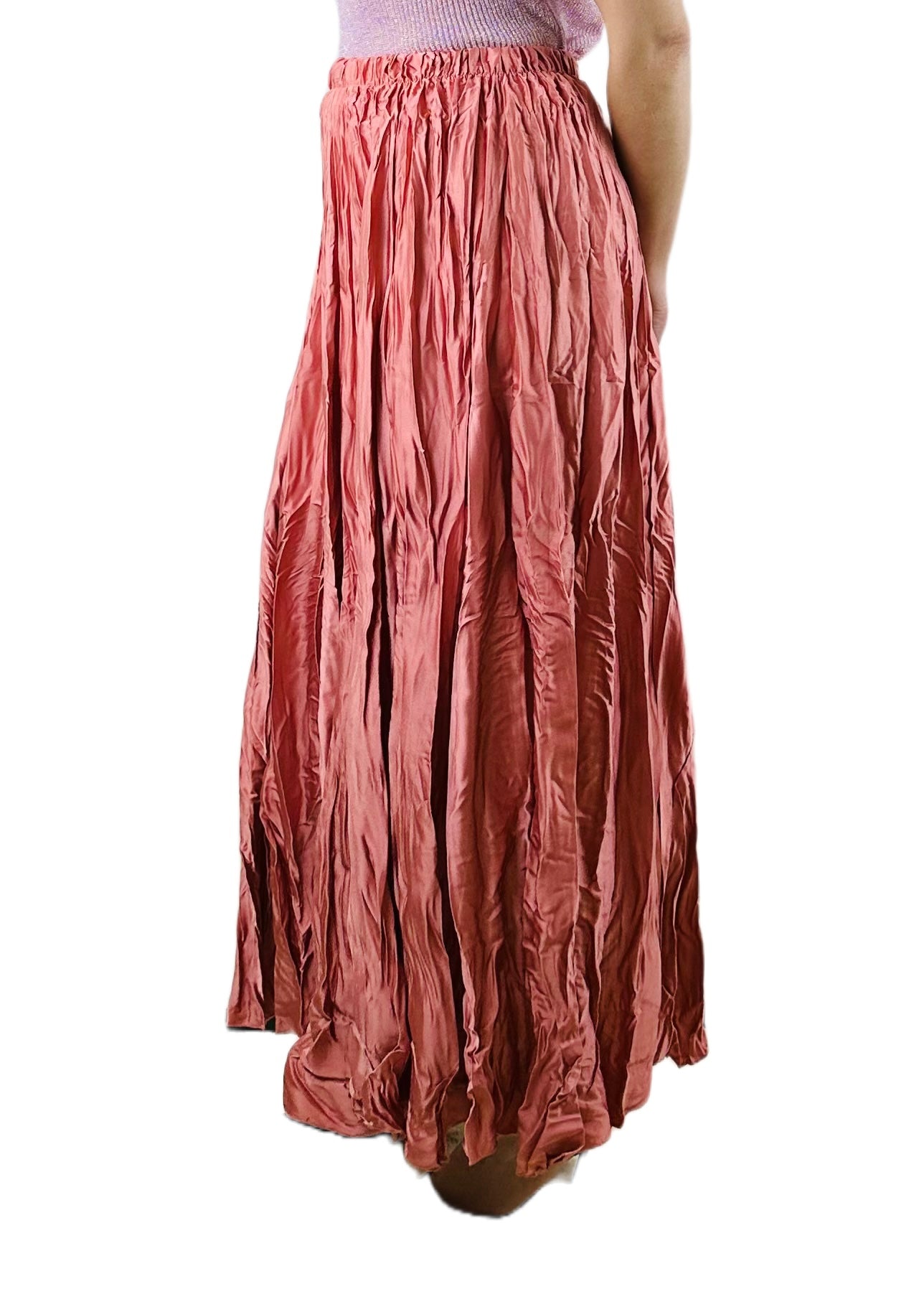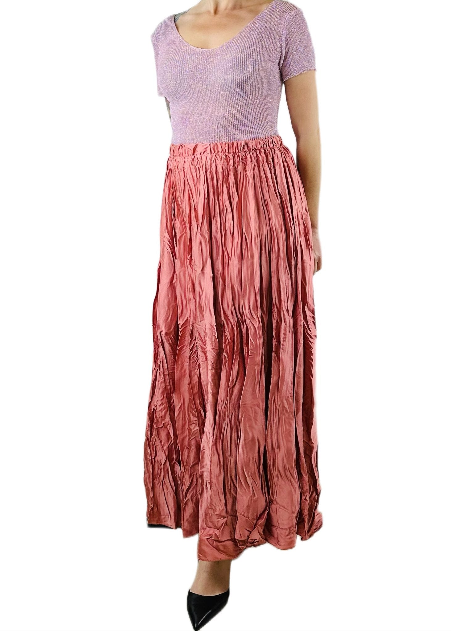 Gonna Midi tessuto con effetto stropicciato . Ha un taglio a mezza ruota con linee scivolate ai fianchi e volumi ondulati al fondo. Vita regolare, sfoderata. La gonna ha una linea pulita ed essenziale, che la rende romantica e raffinata. Vestila con maglioncino e scarpa sportiva per un look attuale e trendy.
