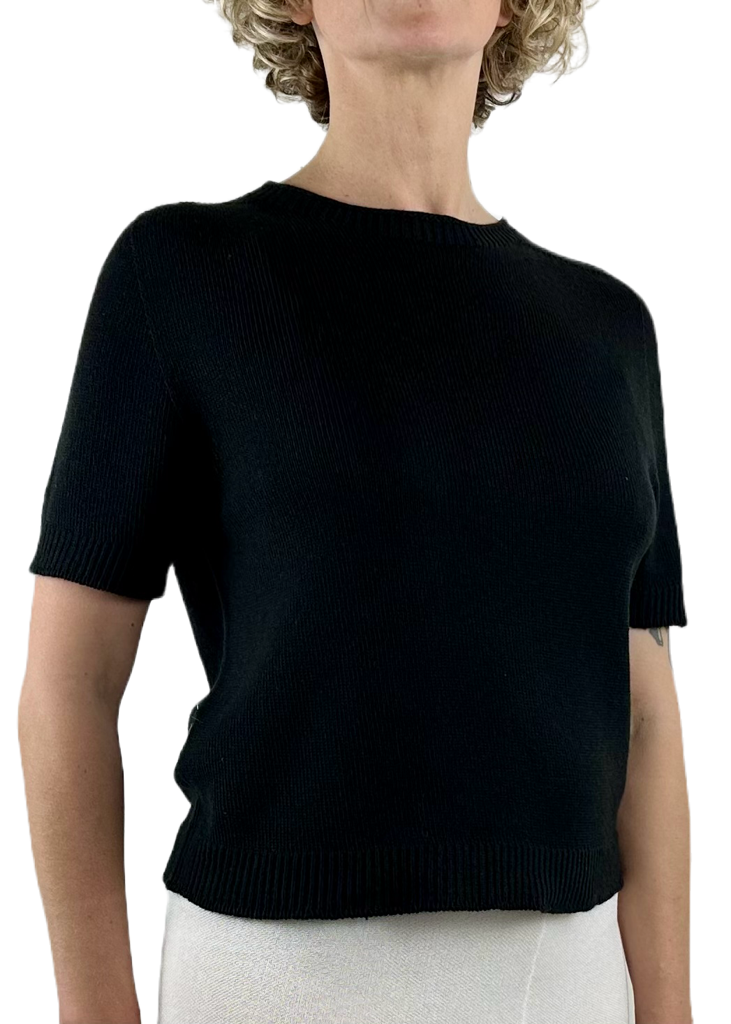 Maglia in cotone mix rifinita con bordi a costine, scollatura girocollo, maniche corte con bordo lavorazione a costine. Di taglio dritto e morbido, Maglioncino classico easy chic, tra una stagione e l’altra.