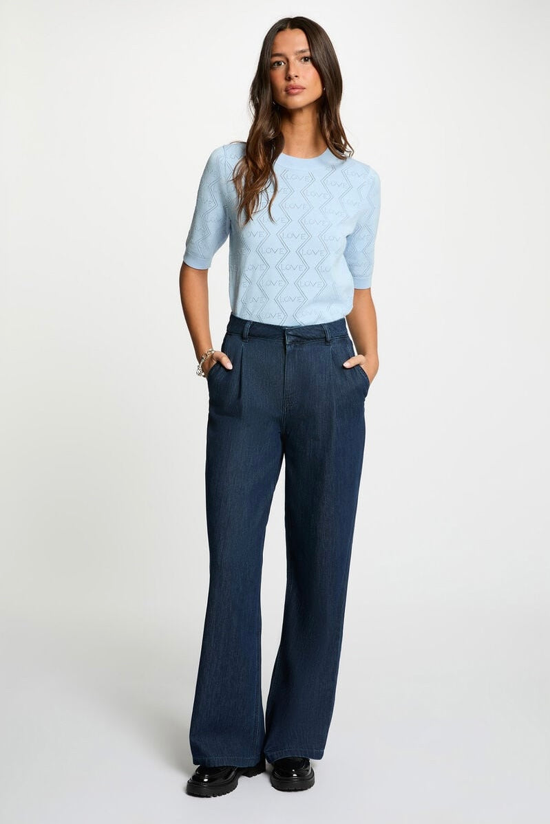 Il maglioncino dritto traforato si abbina perfettamente a jeans a vita alta e mocassini